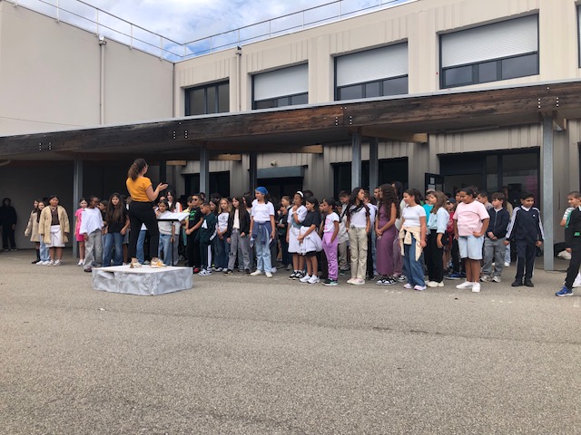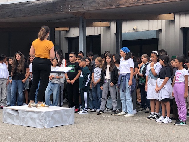 Avant de repartir chez eux à 12h, ils ont eu l’occasion de se produire dans la cour du collège, devant leurs parents venus très nombreux pour les écouter chanter.